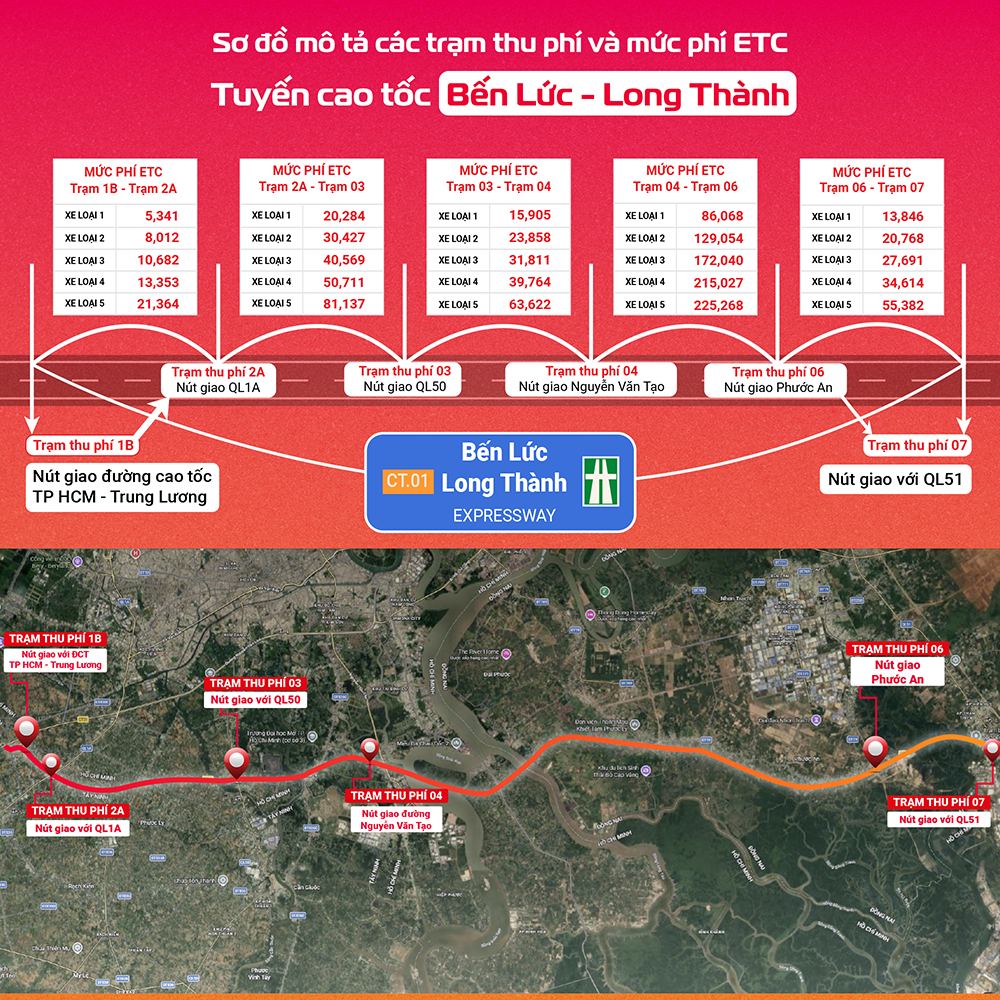 Cao tốc Bến Lức – Long Thành mô tả sơ đồ và mức phí ETC