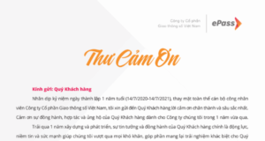 VDTC thông báo biến động số dư trên ứng dụng ePass đối với khách hàng...