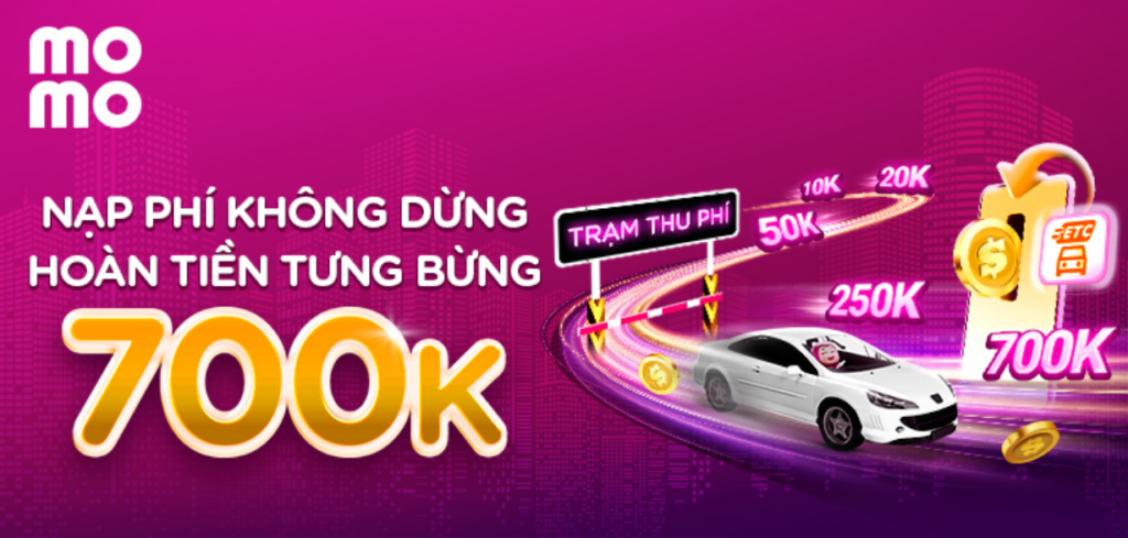 Trong thời gian kể trên, khách hàng khi nạp Phí không dừng từ 50.000Đ trên MoMo sẽ có cơ hội săn hoàn tiền đến 700.000Đ nóng phỏng tay.