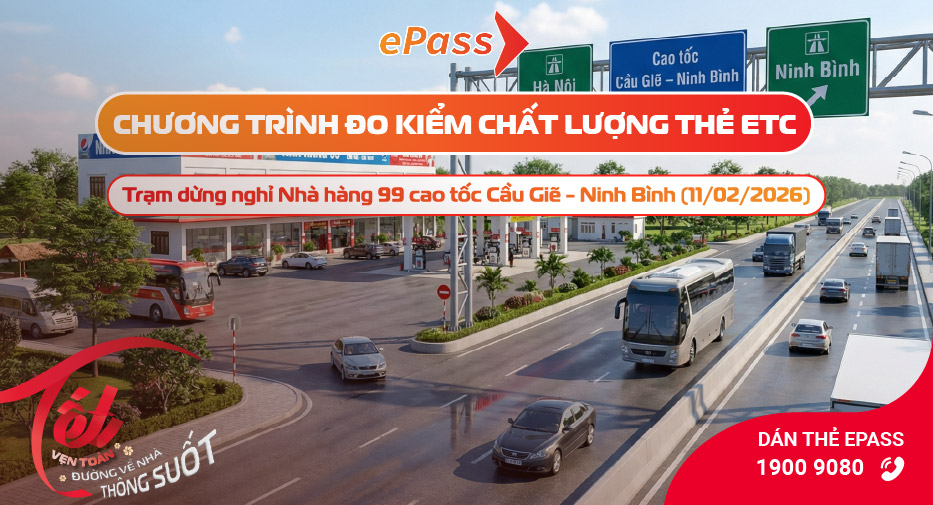Nhằm hỗ trợ khách hàng an tâm lưu thông trong dịp cao điểm Xuân Bính Ngọ 2026, ngày 11/02/2026, ePass đã triển khai chương trình đo kiểm chất lượng thẻ ETC tại Trạm dừng nghỉ Nhà hàng 99 – cao tốc Cầu Giẽ – Ninh Bình.