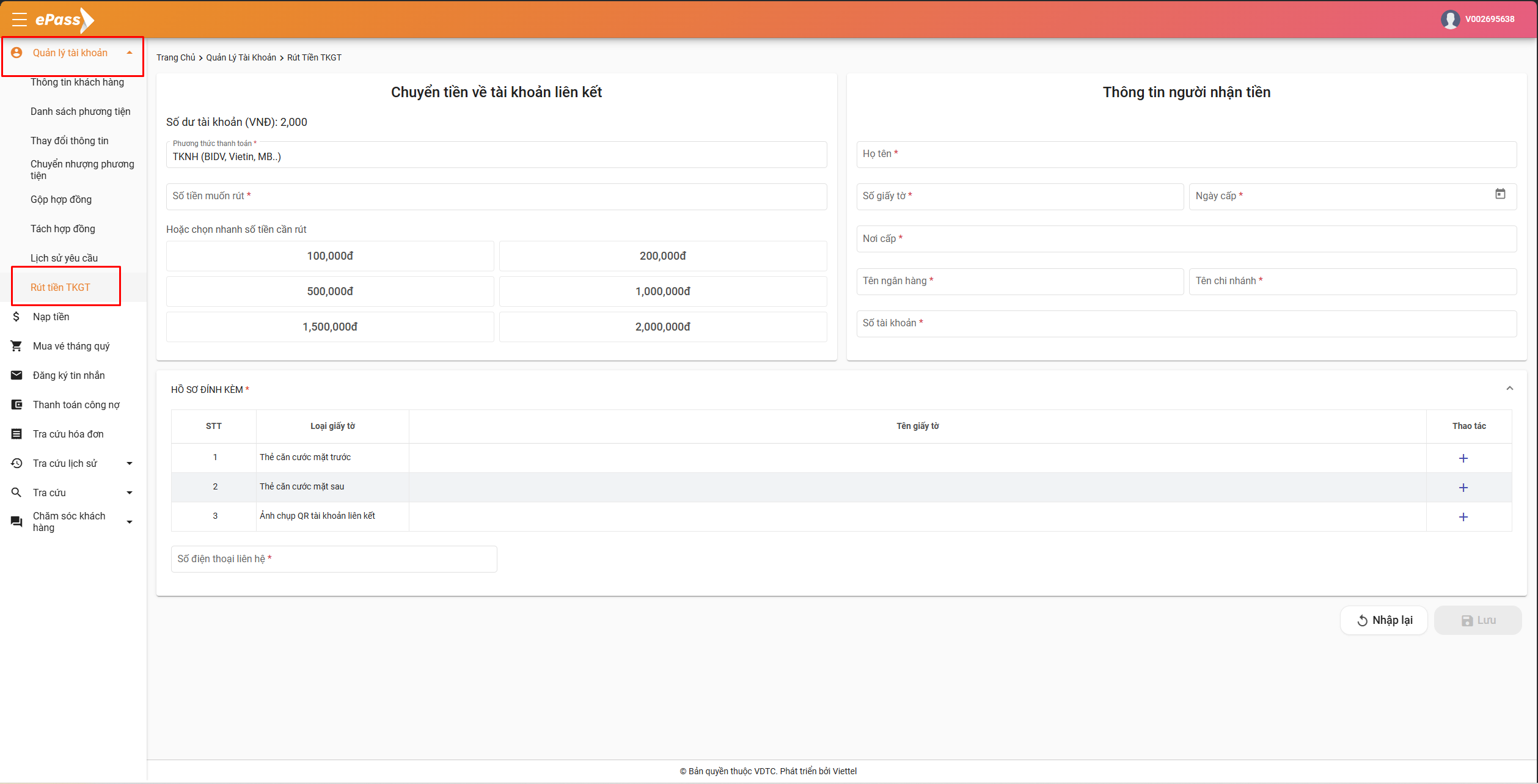 + Thông tin khách hàng: Tên chủ hợp đồng, số giấy tờ đăng ký, ngày/ tháng/ năm sinh, ngày cấp giấy tờ, nơi cấp, địa chỉ, số điện thoại, email, thông tin người đại diện, người ủy quyền