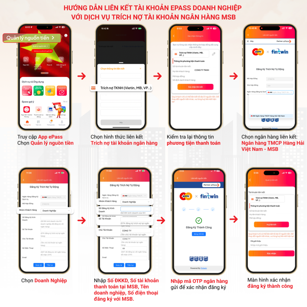 liên kết tài khoản ePass doanh nghiệp với Dịch vụ trích nợ tài khoản ngân hàng MSB