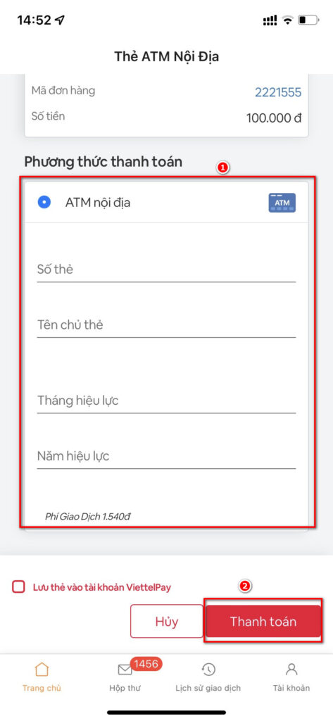 Bước 3: Nhập thông tin phương thức thanh toán ATM nội địa >> Chọn “Thanh toán”