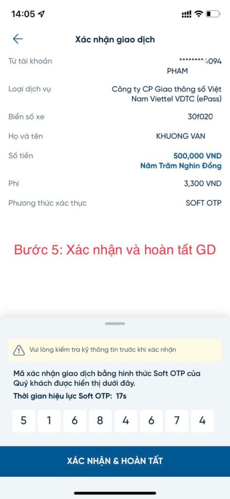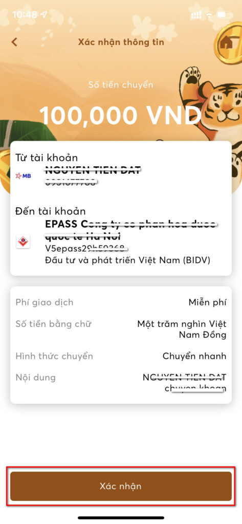 Bước 5: Kiểm tra thông tin giao dịch >> Chọn “Xác nhận”