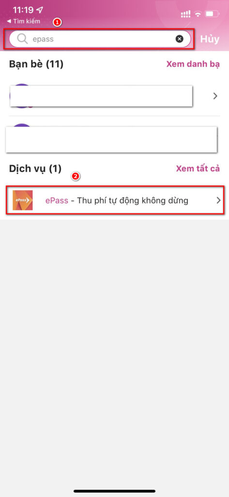 Bước 1: Đăng nhập vào App MoMo và tìm kiếm từ khóa ePass, chọn “ePass – Thu phí không dừng”