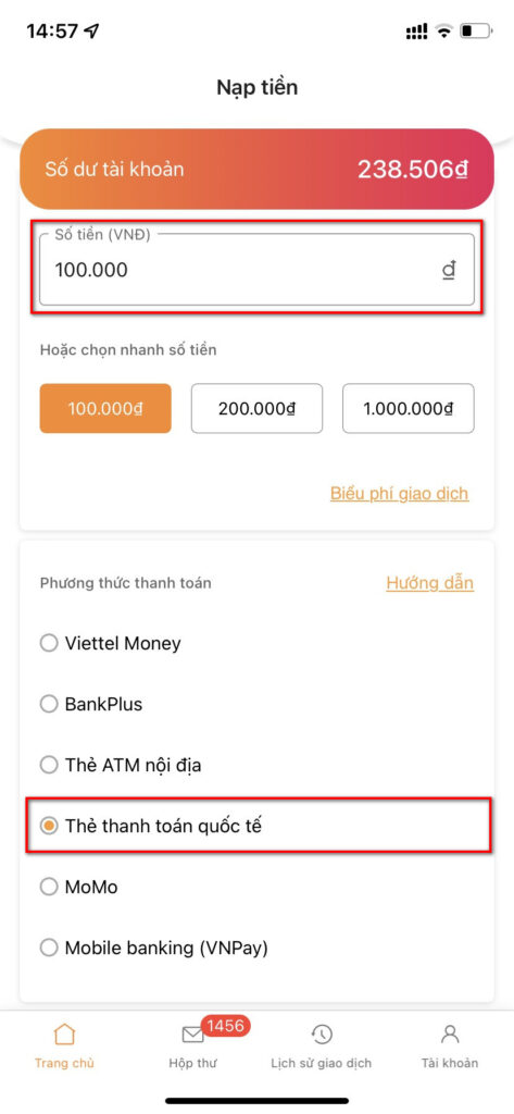 – Thẻ quốc tế: 2000đ + 2% giá trị giao dịch (đã bao gồm VAT)