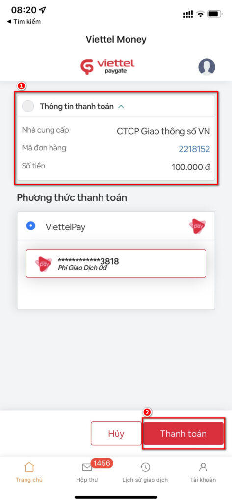 Bước 4: Nhập “Mã xác thực” >> Kiểm tra “Thông tin thanh toán” >> Chọn “Thanh toán”