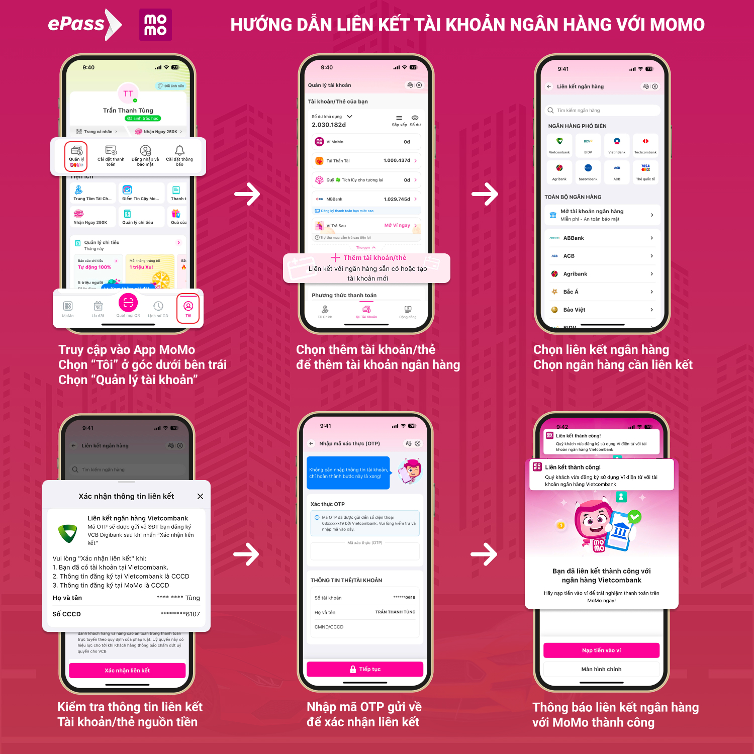 1: Liên kết tài khoản ngân hàng với MoMo