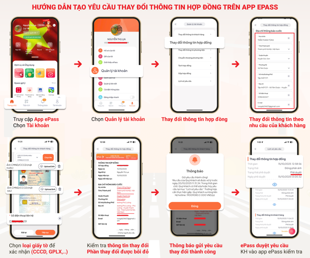 Hướng dẫn tạo yêu cầu thay đổi thông tin và tách/gộp hợp đồng trên app ePass