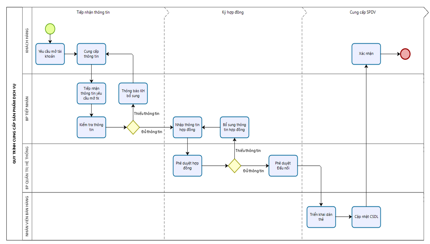 | Nội dung bàn giao | – Phiếu đề nghị/xác nhận yêu cầu cung cấp dịch vụ giữa nhà cung cấp và KH.