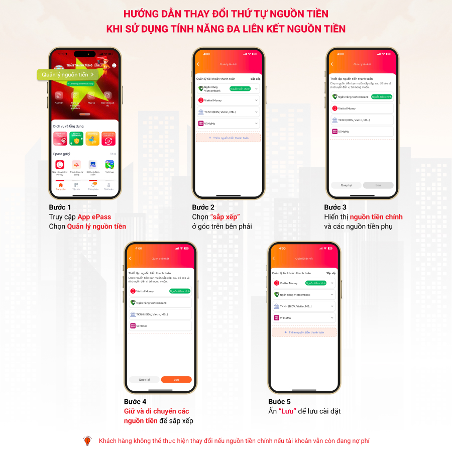 Việc sử dụng tính năng đa liên kết nguồn tiền giúp khách hàng chủ động thay đổi các nguồn tiền với nhau giúp cho việc thanh toán xe qua trạm ePass cũng như các dịch vụ khác thuận tiện hơn